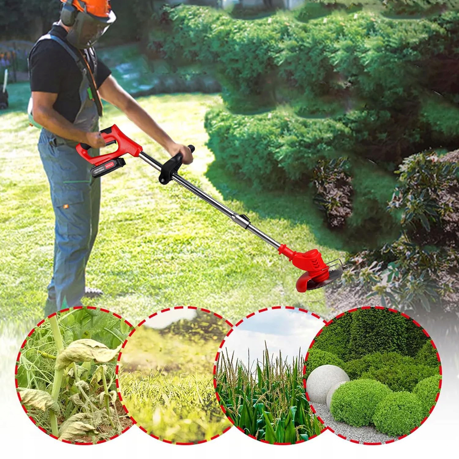 його можна легко перетворити з газового краю в невелику машину для обрізки живоплотів, ідеально підходить для двору чи саду. Створення парків, обрізання садів, обрізання рослин на вулиці, різання газонів тощо. Це ідеальна косарка для вагань невеликих сімейних дворів, садів та інших місць, де немає інструментів.