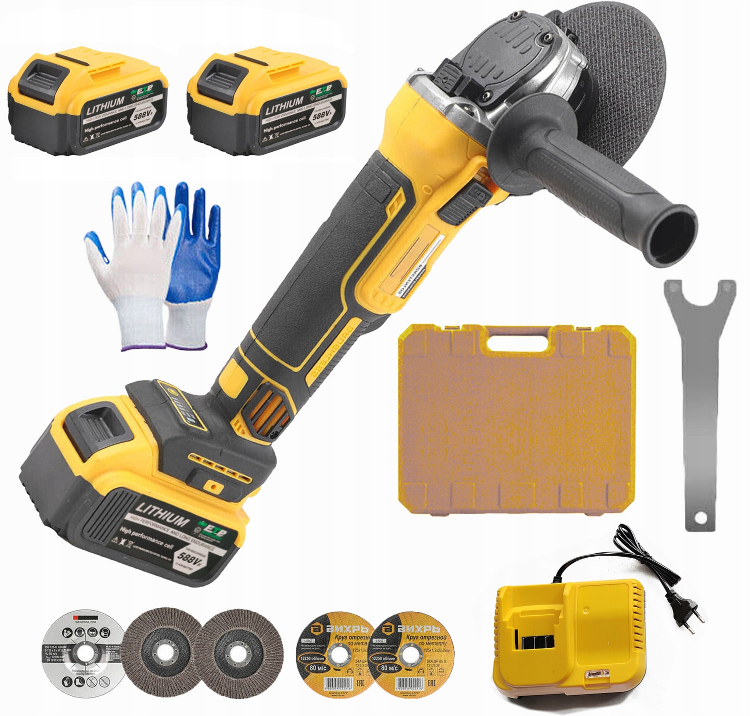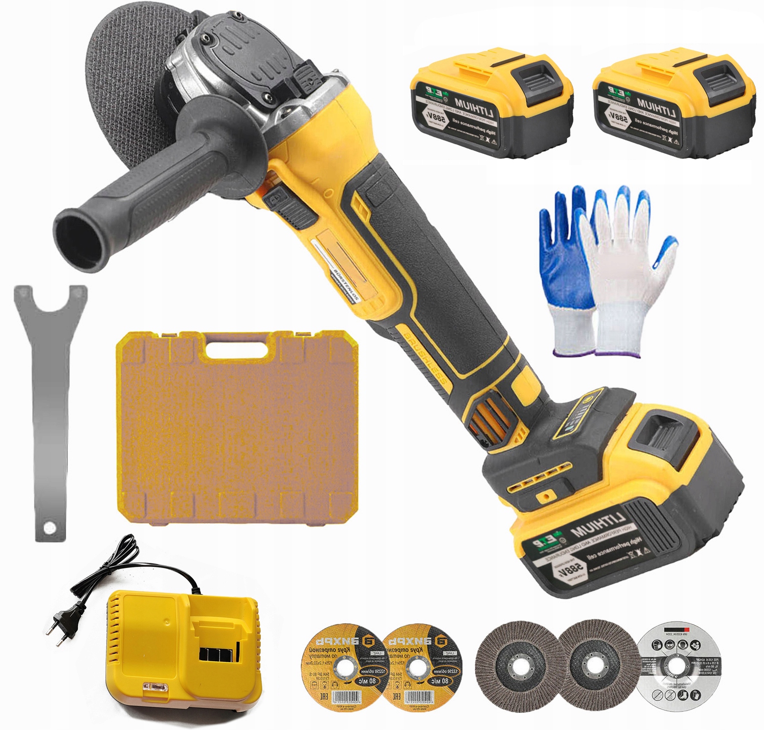 АКУМУЛЯТОРНА КУТОВА ШЛІФУВАЛЬНА МАШИНА 2X6Ah 5X ДИСКІВ 125ММ КОРПУС