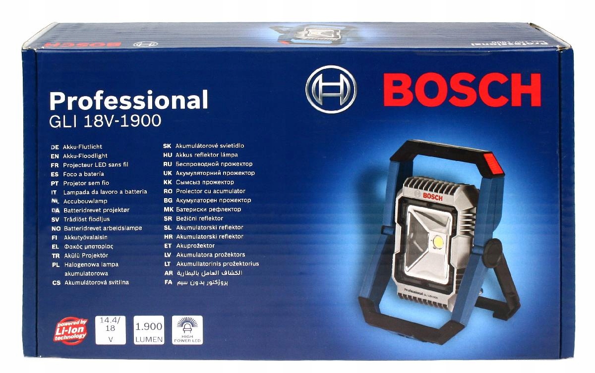 Професійна акумуляторна лампа GLI 18V-1900 від BOSCH - надійний і дуже довговічний пристрій. Це один з найкращих і найпотужніших пристроїв такого типу на даний момент на ринку. Завдяки використанню дуже ефективного та дуже сильного світлодіода лампа досягає світлового потоку 1900 люмен.