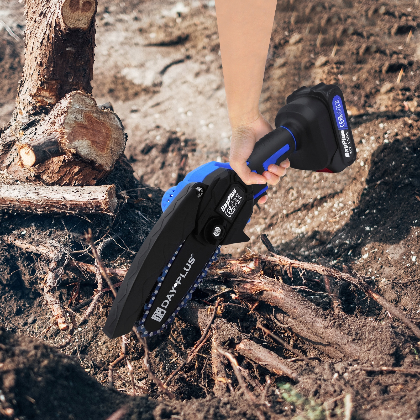 - Легкий і простий у використанні. Маючи лише 0,8 кг для корпусу акумуляторної пилки та 0,3 кг для акумулятора, ця електрична ланцюгова пила практична та забезпечує фантастичну роботу. З перемикачем безпеки для легкого керування міні-електричною ланцюговою пилою.