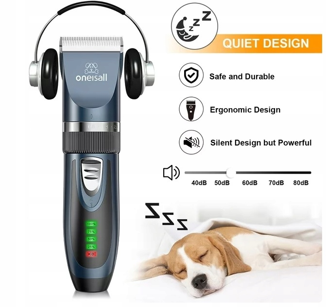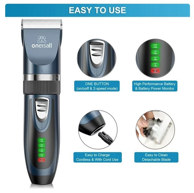 Машинка для стрижки тварин Oneisall; 50 дБ Безшумний 2-швидкісний набір для стрижки собак.