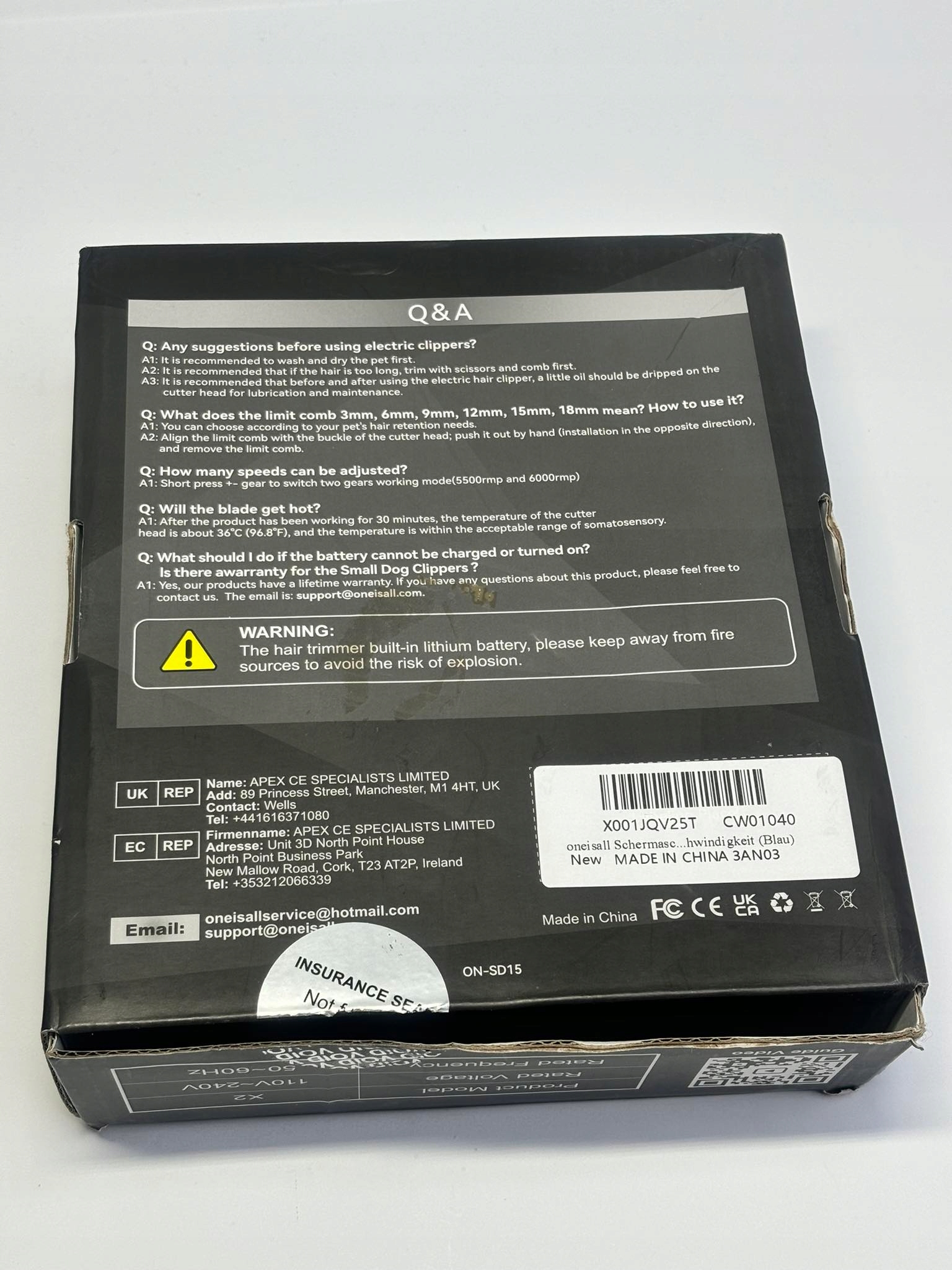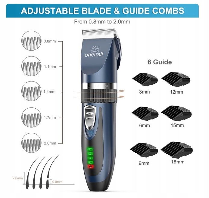 Що ви отримаєте: машинка для стрижки волосся Oneisall, 6 захисних напрямних (3 мм/6 мм/9 мм/12 мм/15 мм/18 мм), щітка для чищення, гребінець, ножиці. Містить усе необхідне для стрижки собаки чи кота.