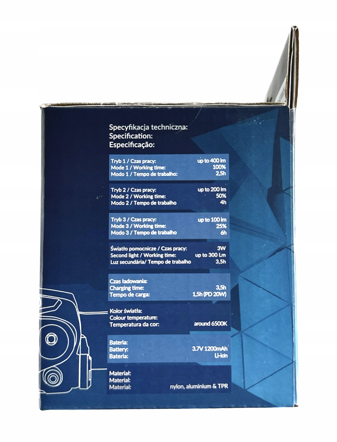 Режим 2: Режим - 100% основне світло 400 люмен (макс. . 2,5 години)