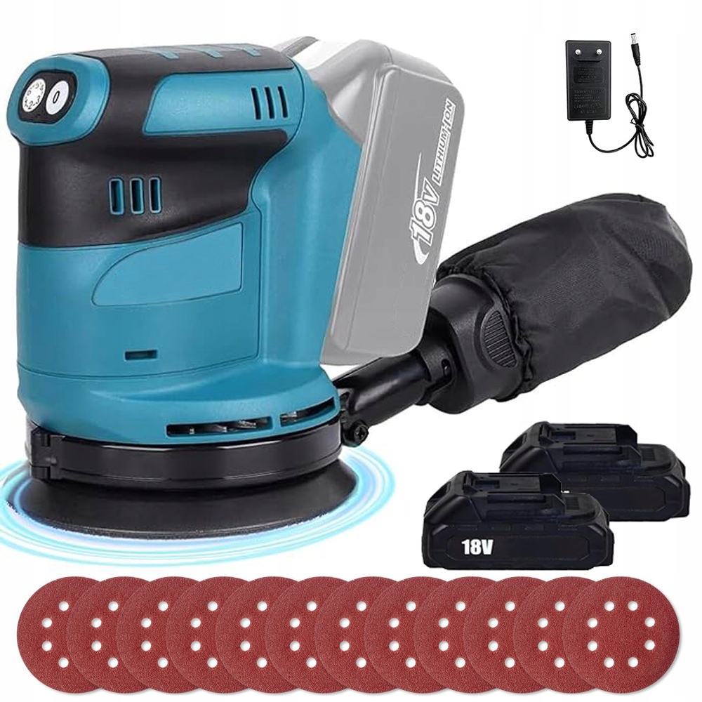 АКУМУЛЯТОРНА ЕКСЦЕНТРИКОВА ШЛІФУВАЛЬНА МАШИНА 125 мм 2x АКУМУЛЯТОР 12x ПАПІР