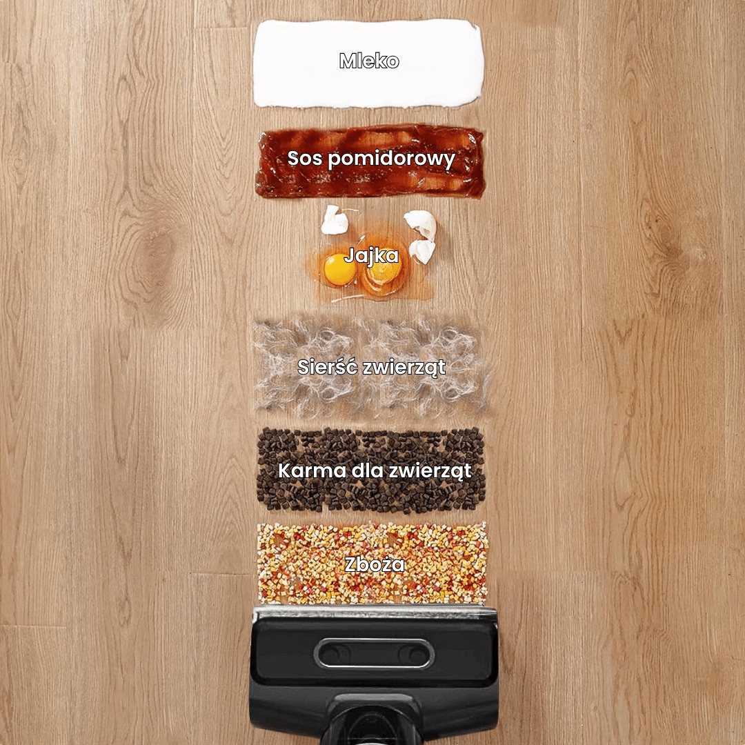 Ефективна бездротова швабра OVOX Pulse легко впорається з різними видами забруднень - від пролитої кави та липких плям на підлозі до крихт чи пилу на килимах.