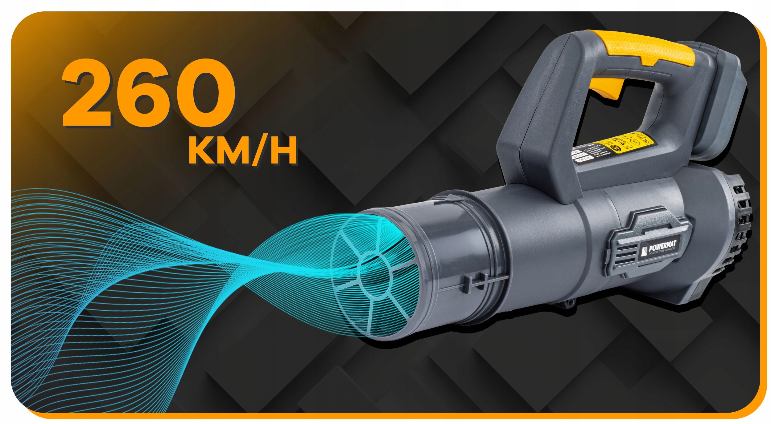 Повітродувка досягає вражаючої швидкості видування до 260 км/год, що дозволяє швидко видаляти листя, траву та інший бруд з різних поверхонь.