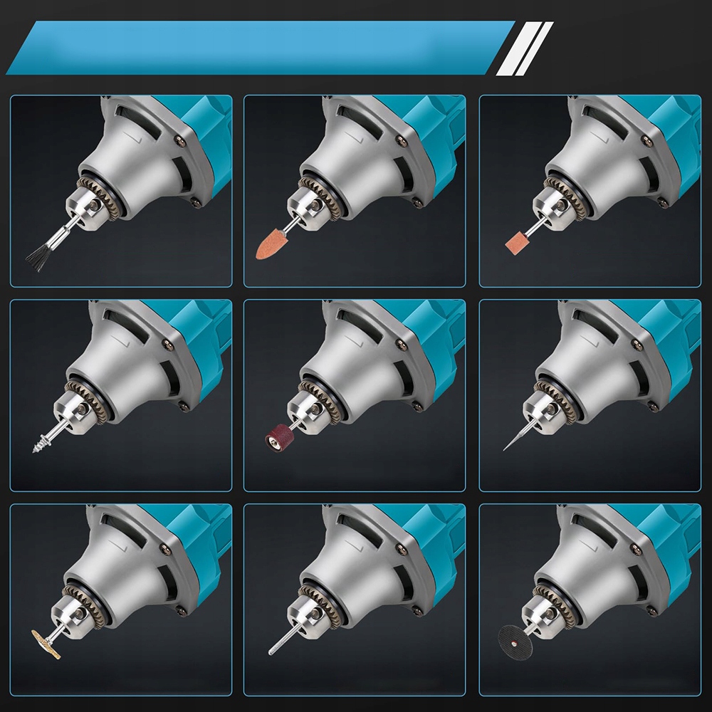 Покращені функції безпеки: із прецизійною цангою з вуглецевої сталі 6 мм, розробленою для надійного кріплення аксесуарів, безпека понад усе. Вбудована кнопка безпеки запобігає випадковому запуску, а ефективні вентиляційні отвори допомагають розсіювати тепло.