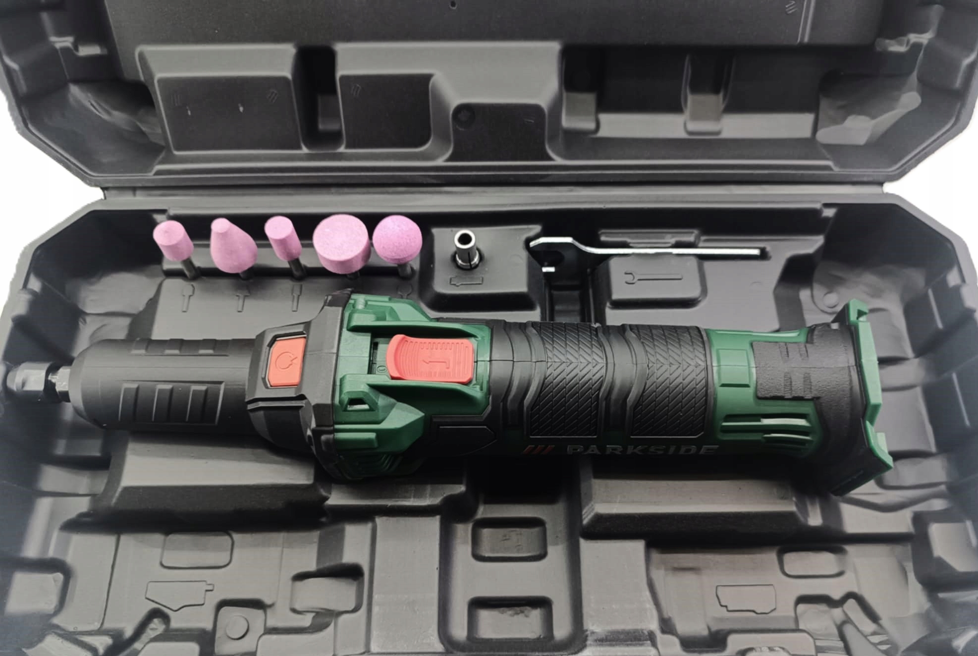 Набір включає: шліфувальну машину, 2 цанги 3,2 мм і 6 мм (у зборі), набір навісних шліфувальних кругів з 5 предметів, 1 монтажний ключ, інструкцію, валізу