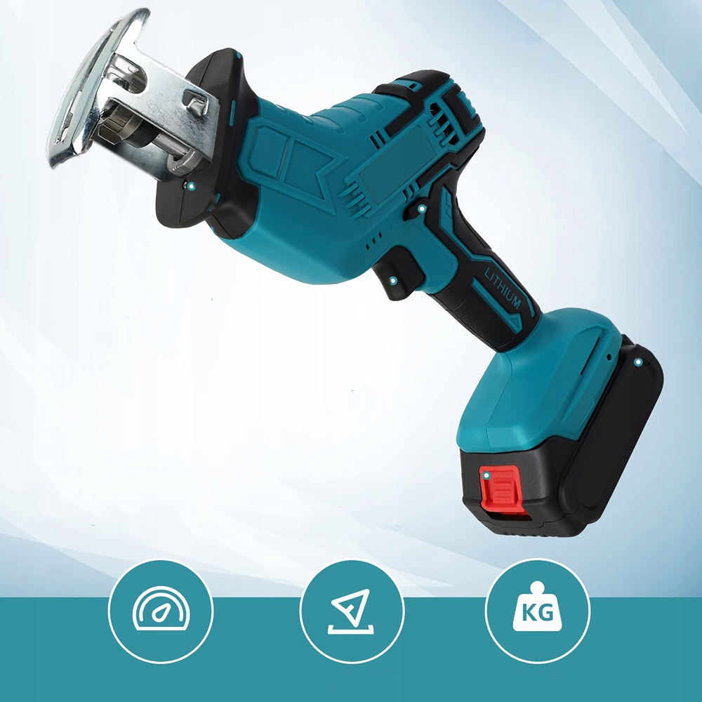 - Набір акумуляторної шабельної пилки має міцну ручку, що самоблокується.