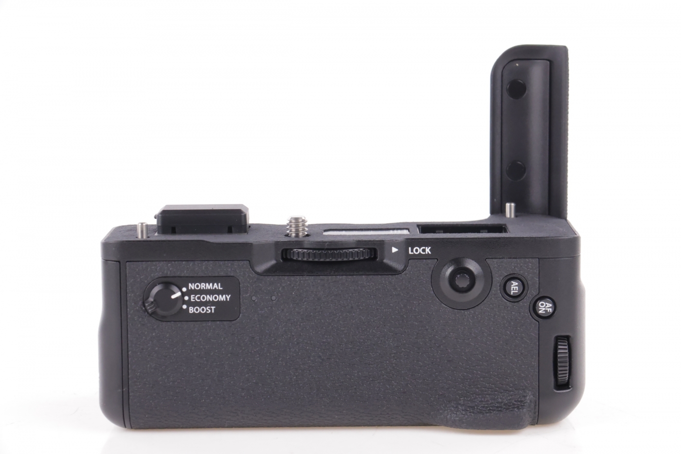 Вертикальна акумуляторна ручка VG-XT4 захищена від пилу та вологи та працює за низьких температур до мінус 10 градусів за Цельсієм. Він містить дві батареї NP-W235, а в поєднанні з третьою батареєю, наявною в корпусі камери, забезпечує приблизно 1450 кадрів у звичайному режимі та 1700 кадрів в екорежимі. Коли один акумулятор розряджається, камера плавно перемикається на наступний, продовжуючи зйомку навіть у режимі серійної зйомки або під час запису відео. Ручка містить кнопку спуску затвора, кільце фокусування, кнопку AEL, кнопку AFON, диски керування, кнопки Q і Fn. Він забезпечує однаковий контроль і комфорт під час вертикальної та горизонтальної зйомки.