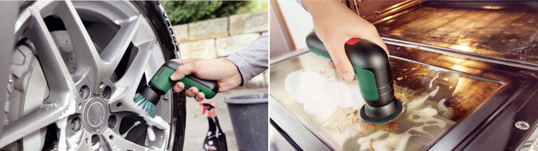 - Широка щітка швидко, легко та без зусиль видаляє стійкий бруд. Ідеально підходить для очищення твердих поверхонь, тканин, кераміки, порцеляни, алюмінію, металу, пластику та ламінату.