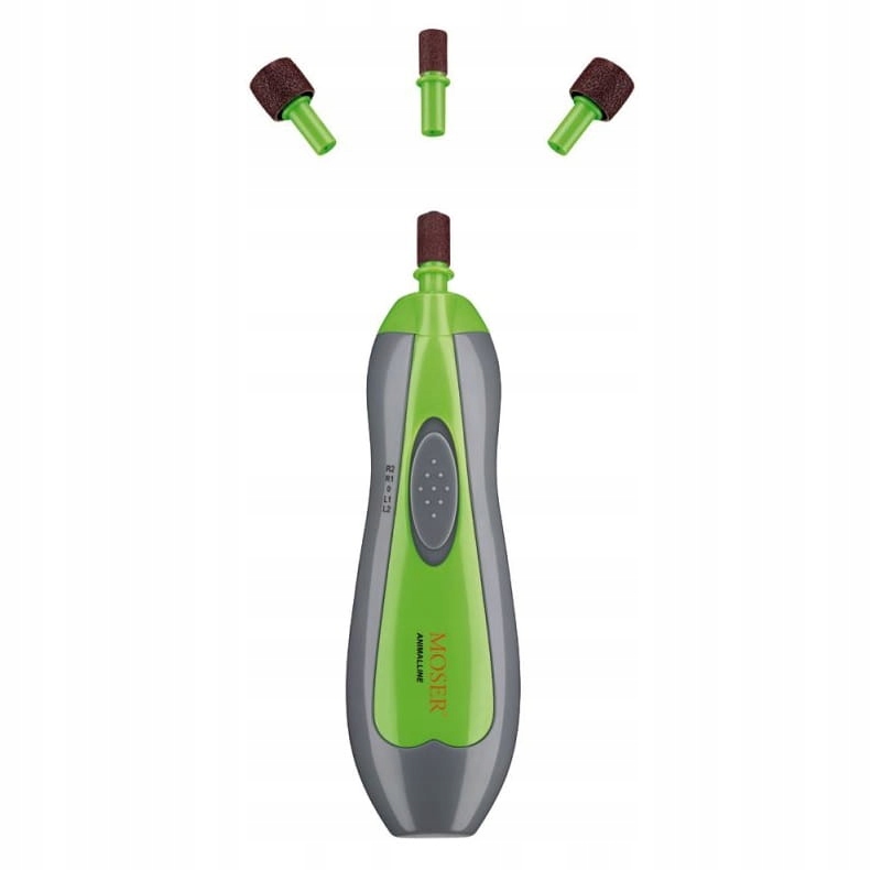 Акумуляторна машинка для цвяхів для собак і кішок Moser. Має два напрямки обертання: для правшів і лівшів. Оснащений двома швидкостями для кожного напрямку обертання. Дана модель болгарки надзвичайно зручна, має тонкий корпус, який добре лежить в руці та полегшує роботу.