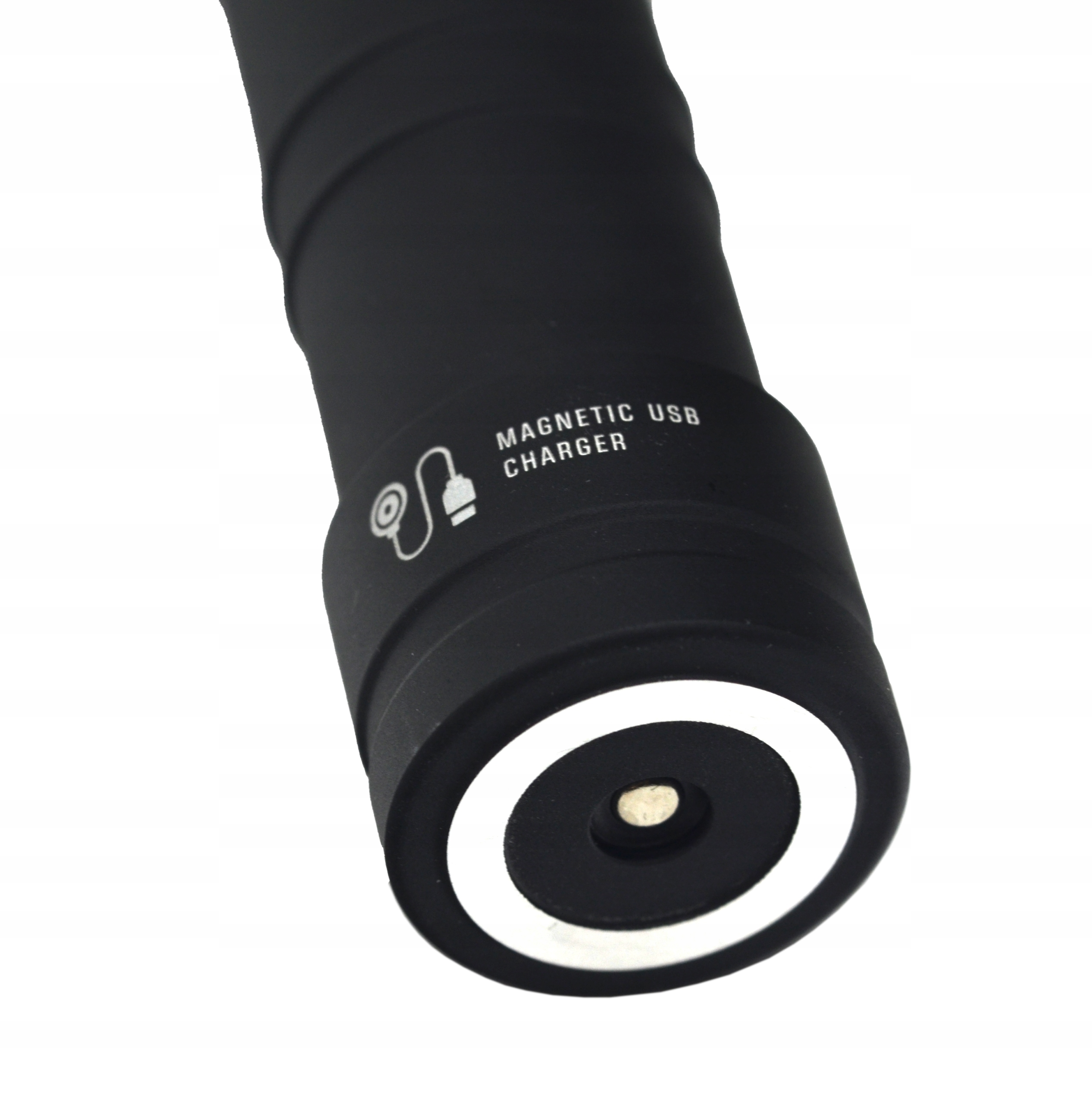 - Щоб зарядити: Відкрутіть задню кришку ліхтарика на 1/4 оберту та під’єднайте його за допомогою магнітного зарядного пристрою.