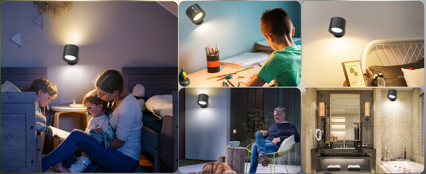 💡Обертання на 360° і сенсорне керування: Світлодіодна настінна лампа всередині оснащена магнітною кулькою, що обертається на 360°, яка може змінювати напрямок джерела світла відповідно до різних потреб. Розроблено з чутливими сенсорними елементами керування, які дозволяють змінювати 3 колірні режими та 3 рівні яскравості.
