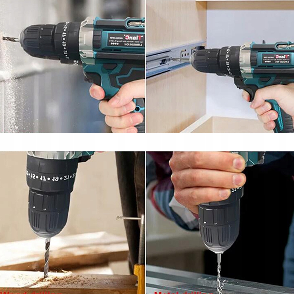 Універсальність із трьома функціями: 🔧 Викрутка, перфоратор і плоске свердло в одному інструменті задовольнить різні потреби. Ідеально підходить для будь-яких завдань вдома та в майстерні.