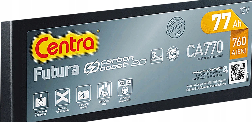 Акумулятор Centra Futura Carbon Boost 2.0 заряджається вдвічі швидше завдяки використанню рішення Exide – вуглецевих добавок на негативних пластинах.