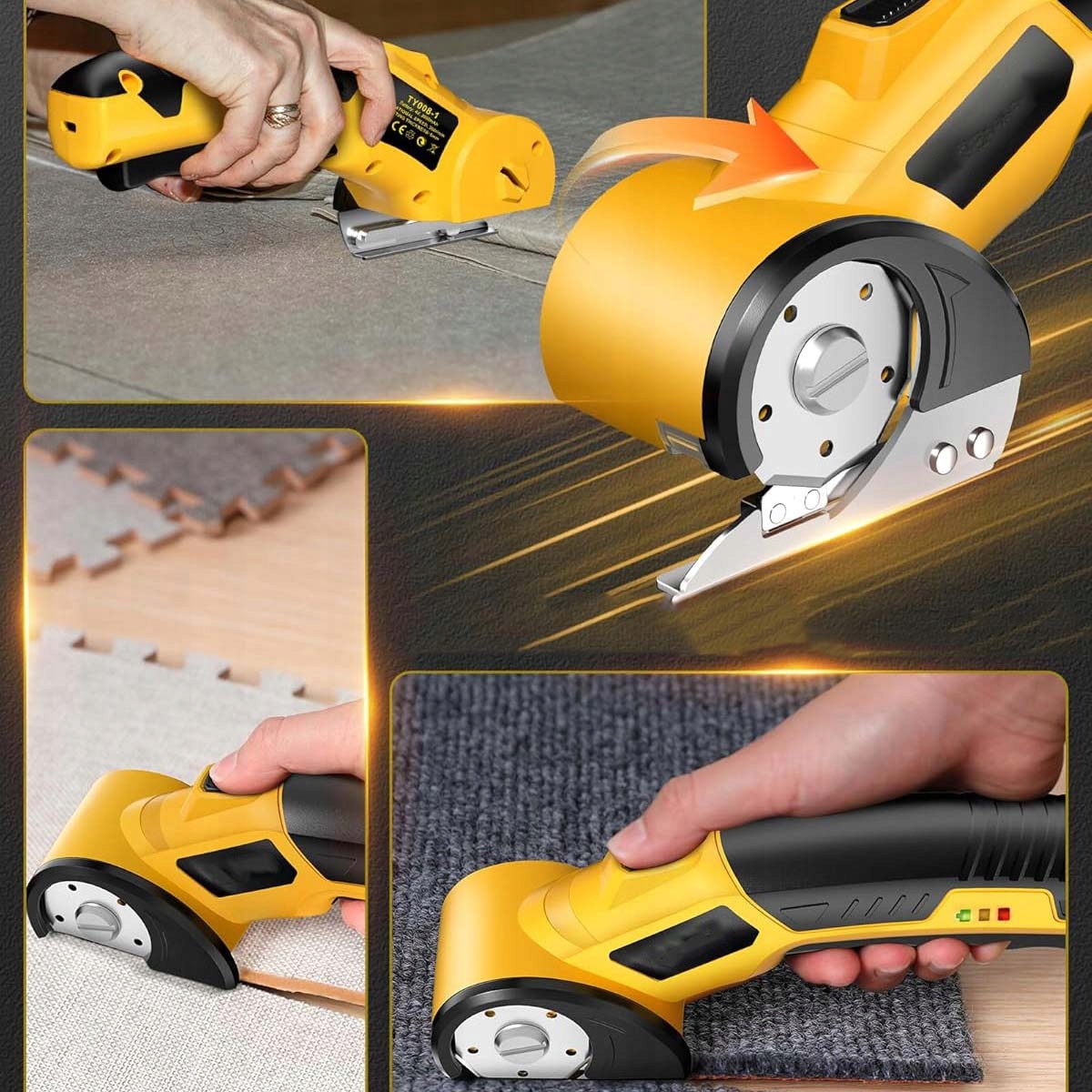 ✂️✂️ Потужні електричні ножиці: електричні ротаційні ножиці мають швидкість різання 300 об/хв і потужність різання 1/4 дюйма. Порівняно з ручними ножицями, бездротові електричні ножиці для тканини потужніші та потужніші.