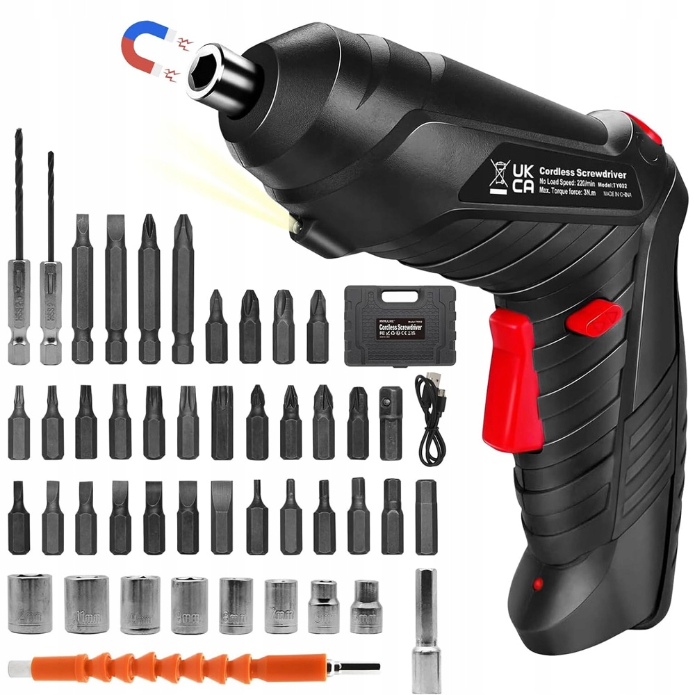 Максимальний крутний момент нашої електричної викрутки становить 3 Н·м і підходить для загвинчування та свердління вдома. Швидкознімний тримач дозволяє легко міняти аксесуари. Перемикач полярності полегшує загвинчування та відкручування гвинтів. Швидкість обертання 220 об/хв забезпечує достатню потужність для різноманітних застосувань, що робить його ідеальним інструментом для домашніх справ.
