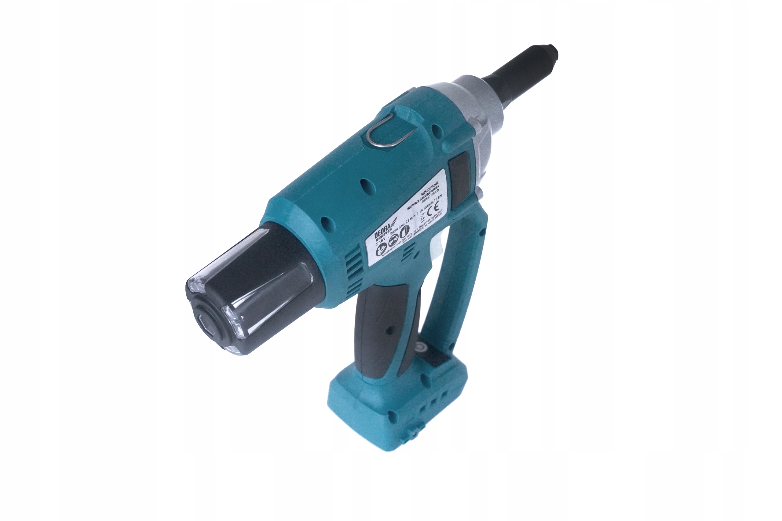 Крім того, акумуляторний клепальник DED7155 має світлодіодне підсвічування, яке безпосередньо впливає на точність роботи та загальний комфорт використання, а також прогумовану ручку, яка забезпечує користувачеві стабільність захоплення. Фотографія лише для ілюстрації.