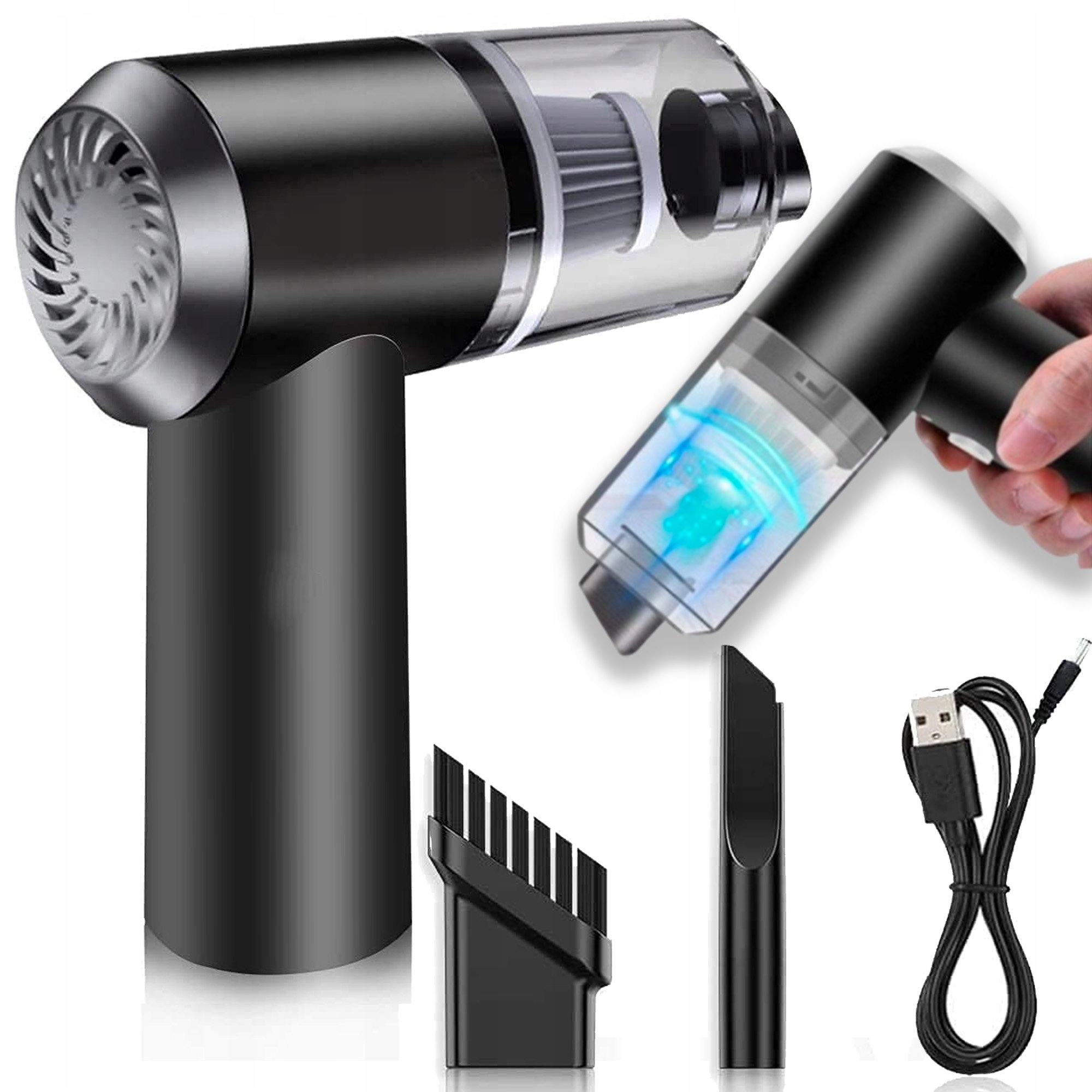 бездротовий очищувач вакууму бездротового автомобіля, міцний 120 Вт, є ідеальним рішенням для збереження чистоти у вашому автомобілі. Завдяки дизайну обіду та зарядки за допомогою USB -кабелю, він зручний і простий у використанні.