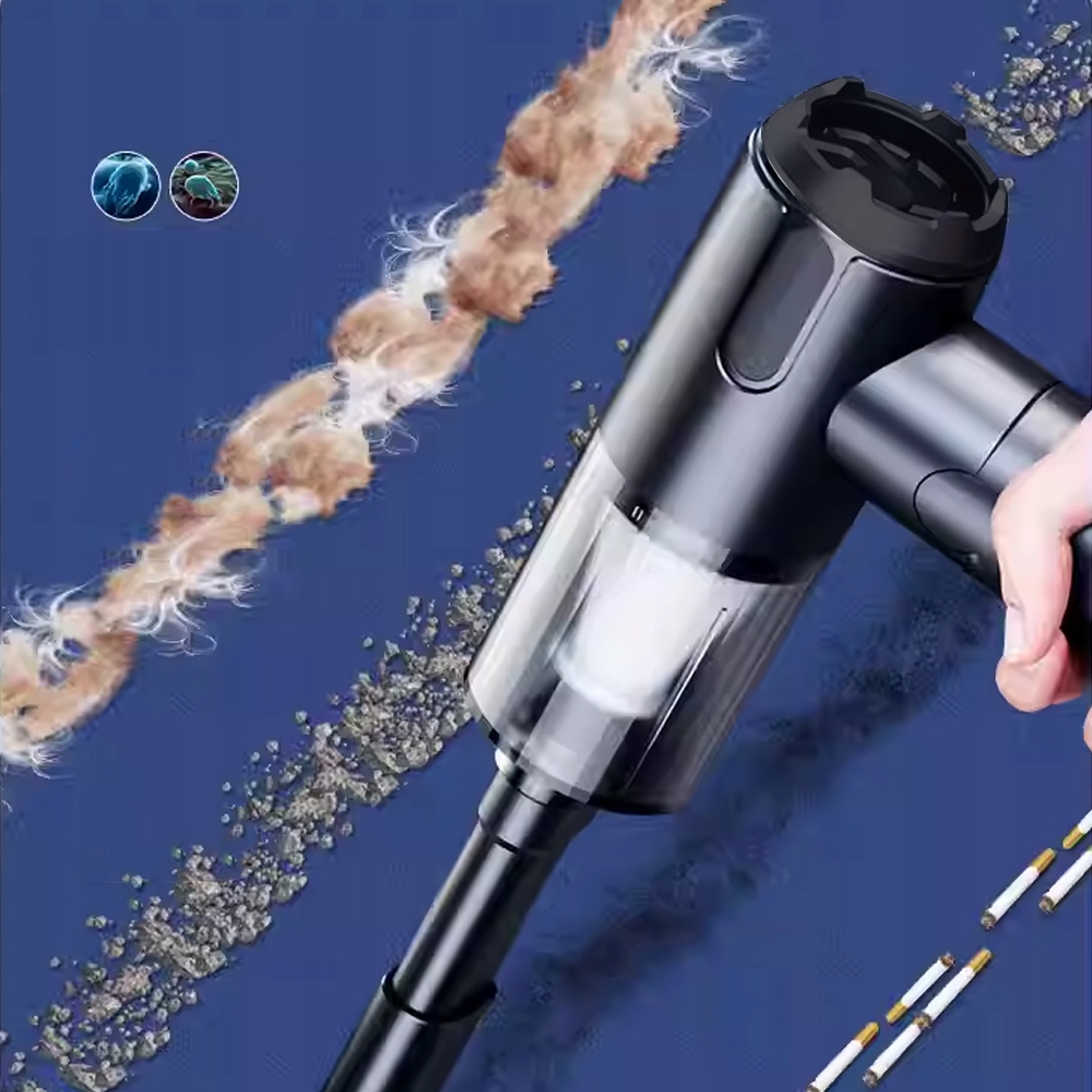 Оснащений цифровим високошвидкісним двигуном, ручний пилосос має потужність всмоктування 8000 Па та легко видаляє пил, шерсть домашніх тварин і залишки їжі. Після заряджання він працює лише менше 2 годин (червоне світло означає зарядженість, зелене світло означає повну зарядку) і може працювати протягом 15 хвилин (час роботи може змінюватися залежно від навантаження на очищення). У набір входить зарядний кабель USB-C, який дозволяє заряджати пилосос від USB-порту будь-де в машині чи вдома.