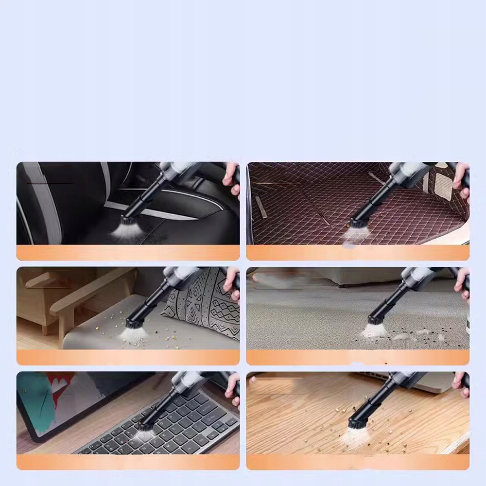 🍃Акумуляторний пилосос – це маленький і портативний пилосос: Маленький пилосос маленький і легкий, важить лише 400 г, простий у використанні, транспортуванні та зберіганні. Завдяки ергономічній ручці цей портативний пилосос зручно лежить у руці та не обтяжує зап'ястя. Бездротова конструкція та запуск однією кнопкою. Вбудований високоефективний двигун дозволяє легко швидко очистити тріщини у вашому домі/офісі/автомобілі, як-от розсувні двері, дивани, клавіатури, сидіння тощо.