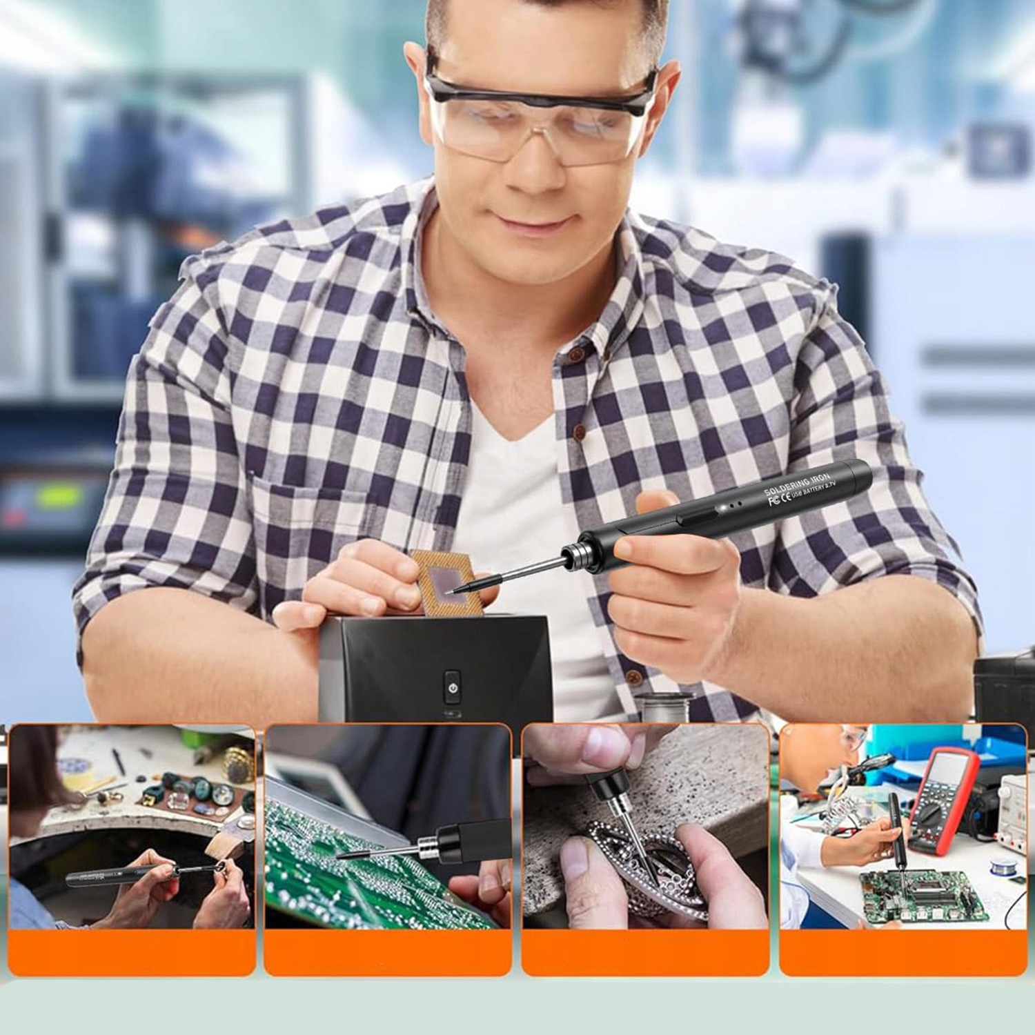 【Інноваційна технологія】Набір для бездротового паяння USB оснащено вбудованим літій-іонним акумулятором, який забезпечує бездротове живлення. Ідеально підходить для пайки друкованих плат, ремонту побутової техніки, виготовлення ювелірних виробів і металевих головних уборів, ремонту комп’ютерів і саморобних проектів.