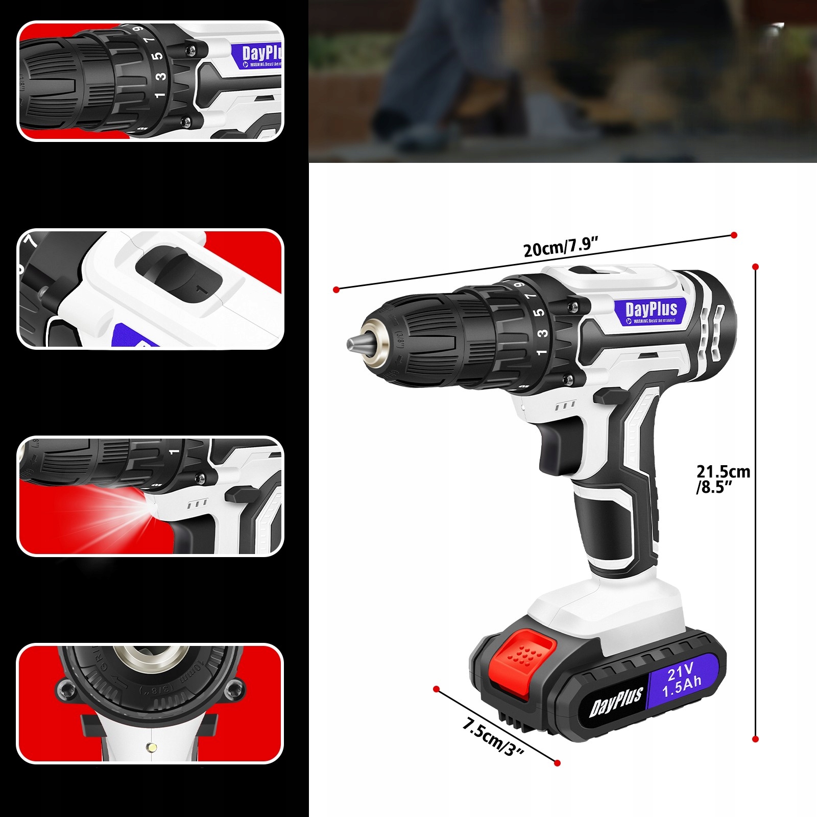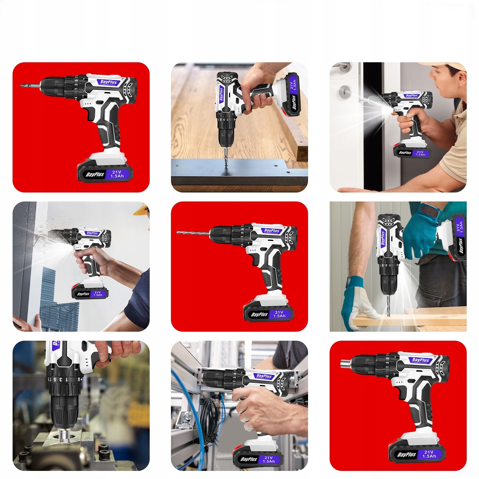 Ця бездротова електрична дриль на 21 В оснащена літій-іонним акумулятором великої ємності ємністю 1500 мАг і технологією швидкого заряджання протягом 1 години, що забезпечує безперервну роботу до 2 годин. Поєднання високої потужності та тривалого часу роботи батареї гарантує, що ви зможете ефективно виконувати всі види робочих завдань.