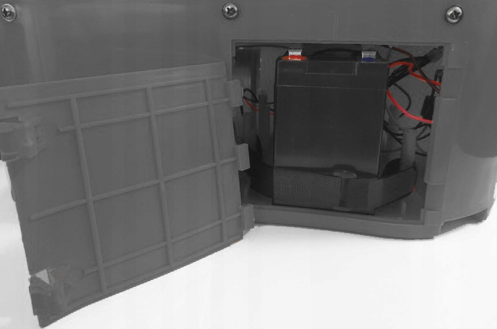 Відкритий корпус дозволяє дістатися до акумулятора без зайвих інструментів і замінити його або зарядити за допомогою звичайного зарядного пристрою для гелевих акумуляторів