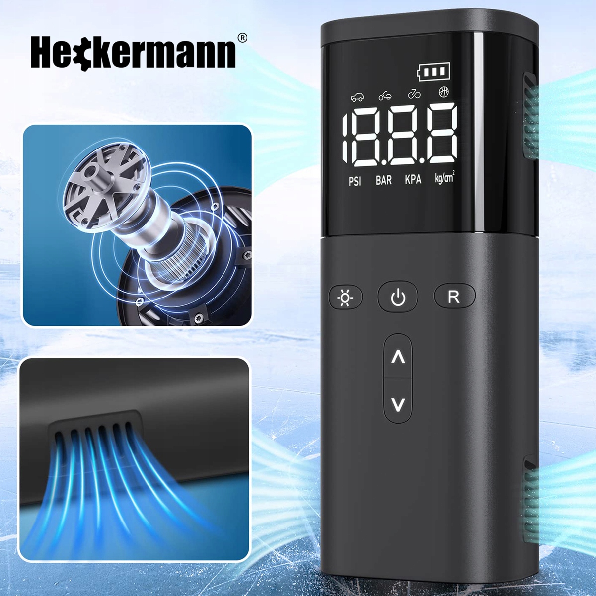- Акумуляторний автомобільний компресор оснащено ефективним двигуном і завдяки передовій технології він може забезпечувати максимальний тиск 150 psi та дуже швидку зарядку шини.