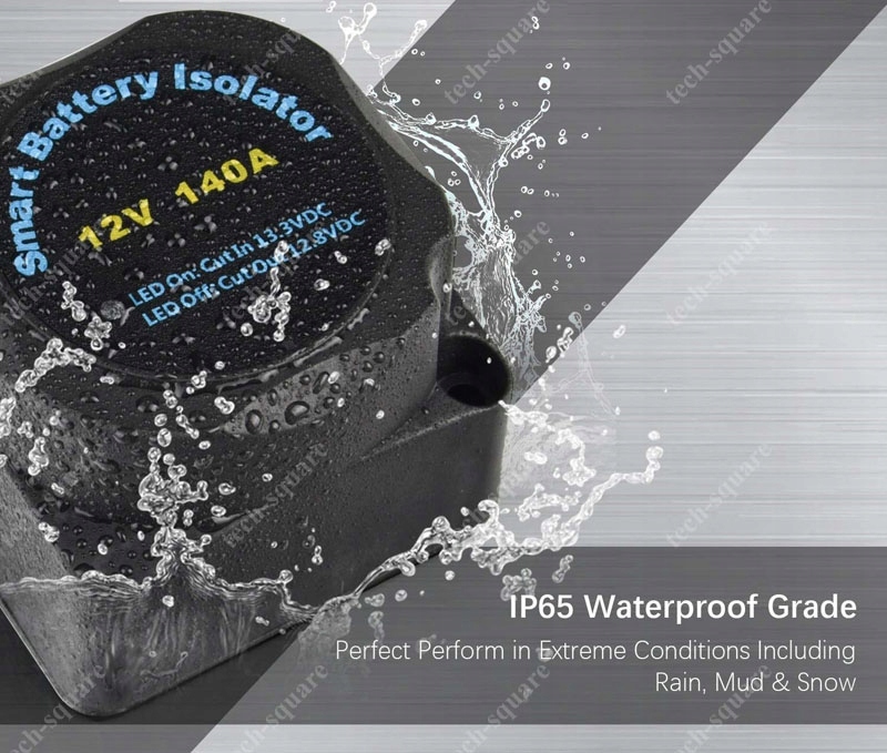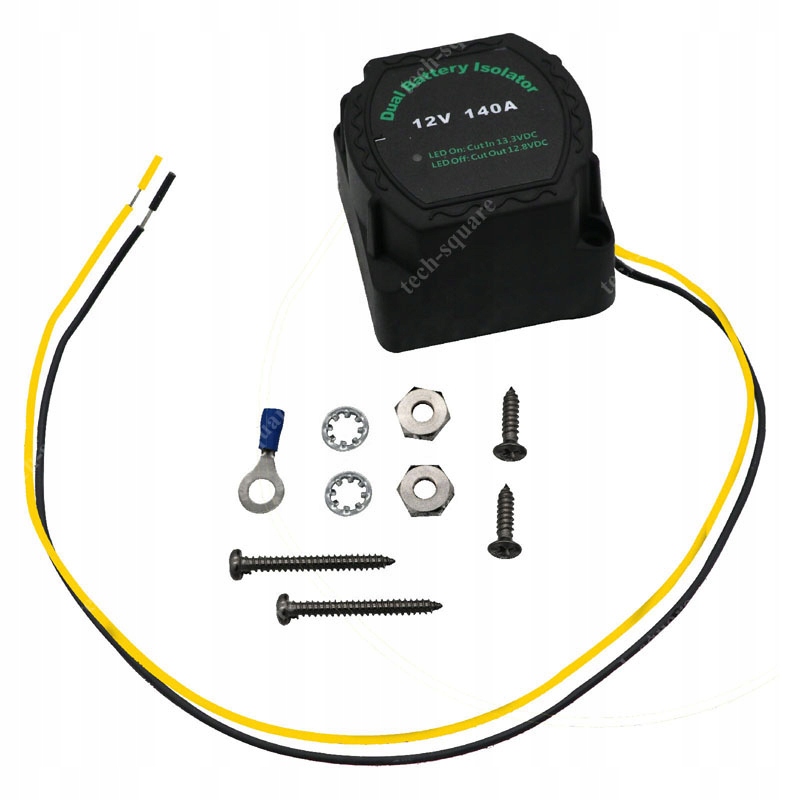 Ізолятор батареї є ідеальним рішенням для конфігурації з’єднання двох батарей таким чином, щоб обидві батареї заряджалися одночасно. час роботи двигуна і відключає другий акумулятор після вимкнення двигуна, завдяки чому при зупинці використовується струм від другого акумулятора, а стартерний акумулятор завжди повністю заряджений. Реле вмикається при напрузі 13,7 В і відключається при напрузі 12,8 В