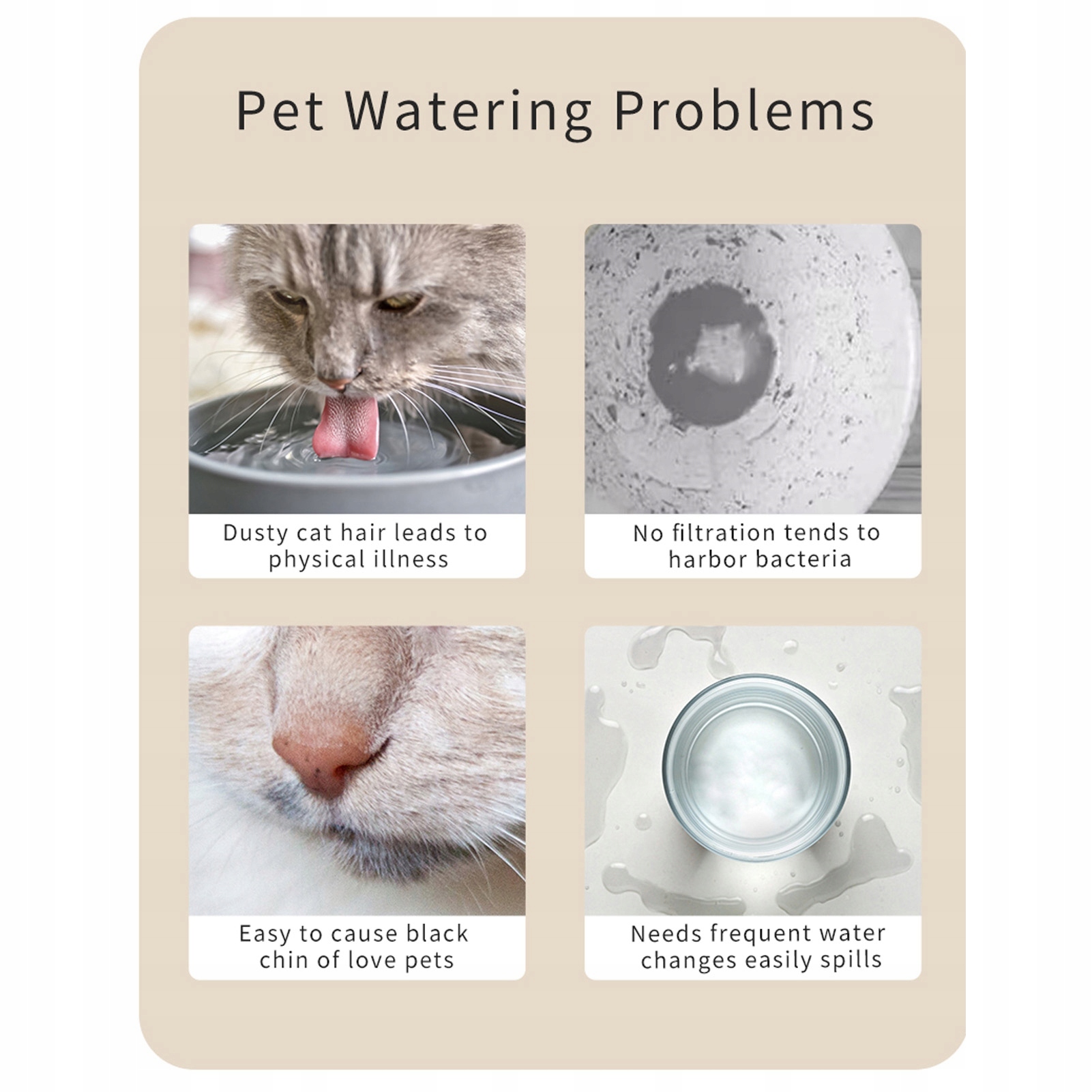 5. Потрійна ефективна фільтрація: оснащена потрійною ефективною фільтрацією, фільтруючими елементами з активованого вугілля зі шкаралупи кокосового горіха та каменю мафан, вона працює над адсорбцією, фільтрацією, пом’якшенням і очищенням, вирішуючи проблему липкої біоплівки, знайденої у водних пристроях. Poido з нержавіючої сталі 304 забезпечує гігієну вашої кішки.