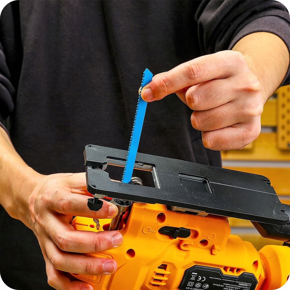 Лобзик DEKO DKJS20Q1Y - незамінний пристрій для обробки дерева та металу. Ручка регулювання швидкості дозволяє регулювати швидкість відповідно до ваших умов. Він пропонує суцільнометалевий пристрій для зміни лез без ключа, який керується важелем, що дозволяє швидко та легко замінити леза. Міцна та легка конструкція забезпечує меншу втому. Зручність і комфорт роботи підвищує батарея. Лобзик ідеально підходить для роботи на будівництві або для домашньої роботи своїми руками.