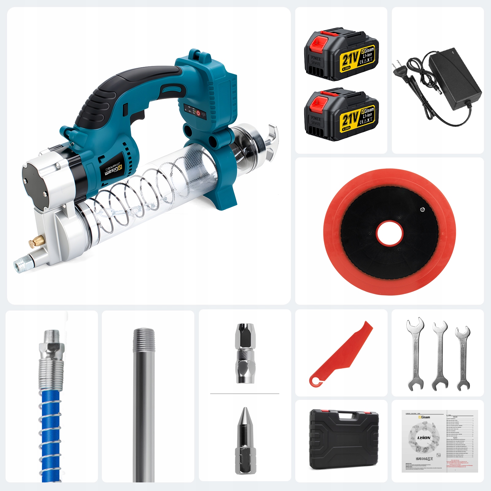 Надзвичайна продуктивність - наш бездротовий мастильний пістолет має вдосконалений безщітковий двигун, здатний створювати максимальний робочий тиск (10 000 PSI), забезпечуючи високу продуктивність, заощаджуючи дорогоцінний час, ефективно очищаючи забиті мастильні порти та забезпечуючи плавну та ефективну роботу змащення.