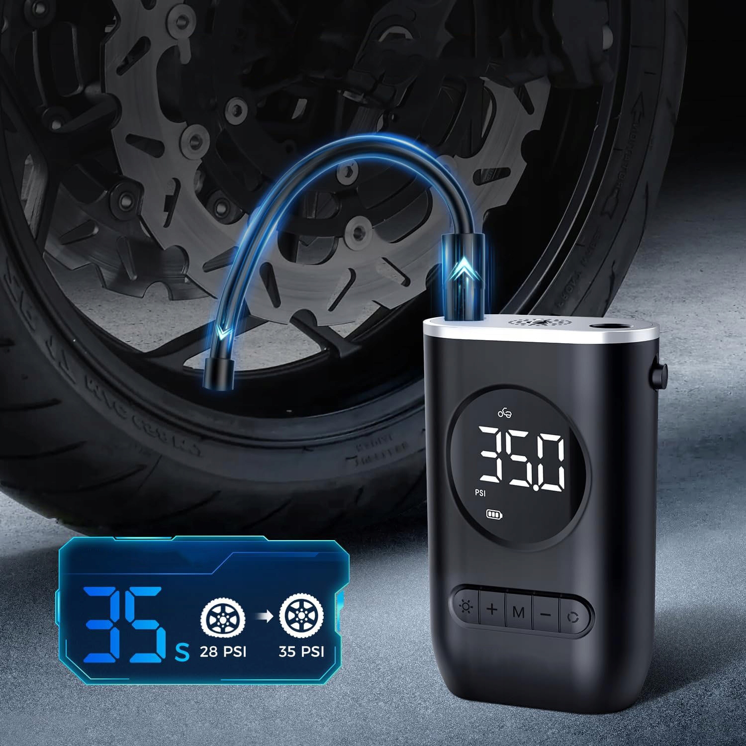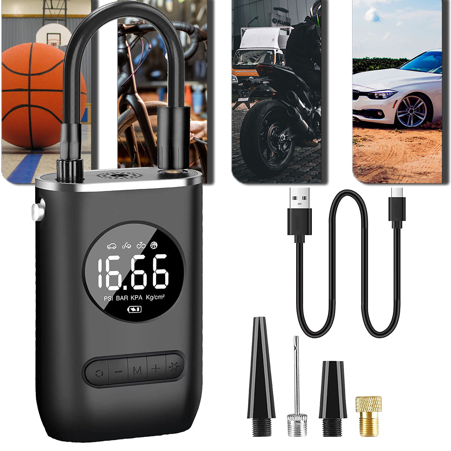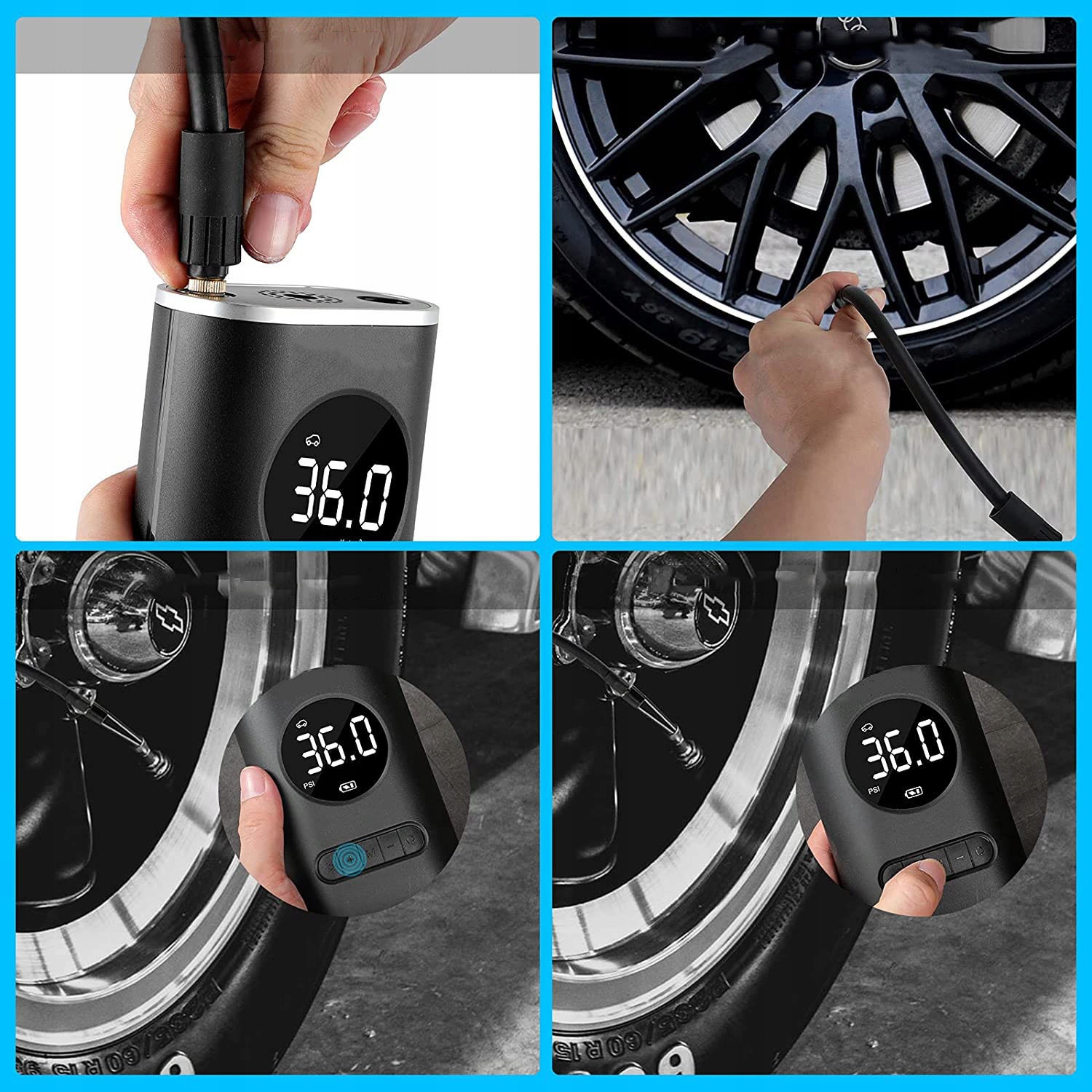 👍👍 Точний і безпечний -Автомобільний насос для шин має вбудований манометр і РК-екран , забезпечуючи точний моніторинг тиску в реальному часі. Він має зручне налаштування тиску в шинах і функцію автоматичного відключення для безпроблемного накачування шин. Автоматично зупиняється при досягненні бажаного тиску в шинах, запобігаючи надмірному накачуванню та забезпечуючи оптимальну продуктивність і безпеку шин. Насолоджуйтесь душевним спокоєм і безпроблемним накачуванням із цим надійним і ефективним повітряним насосом.