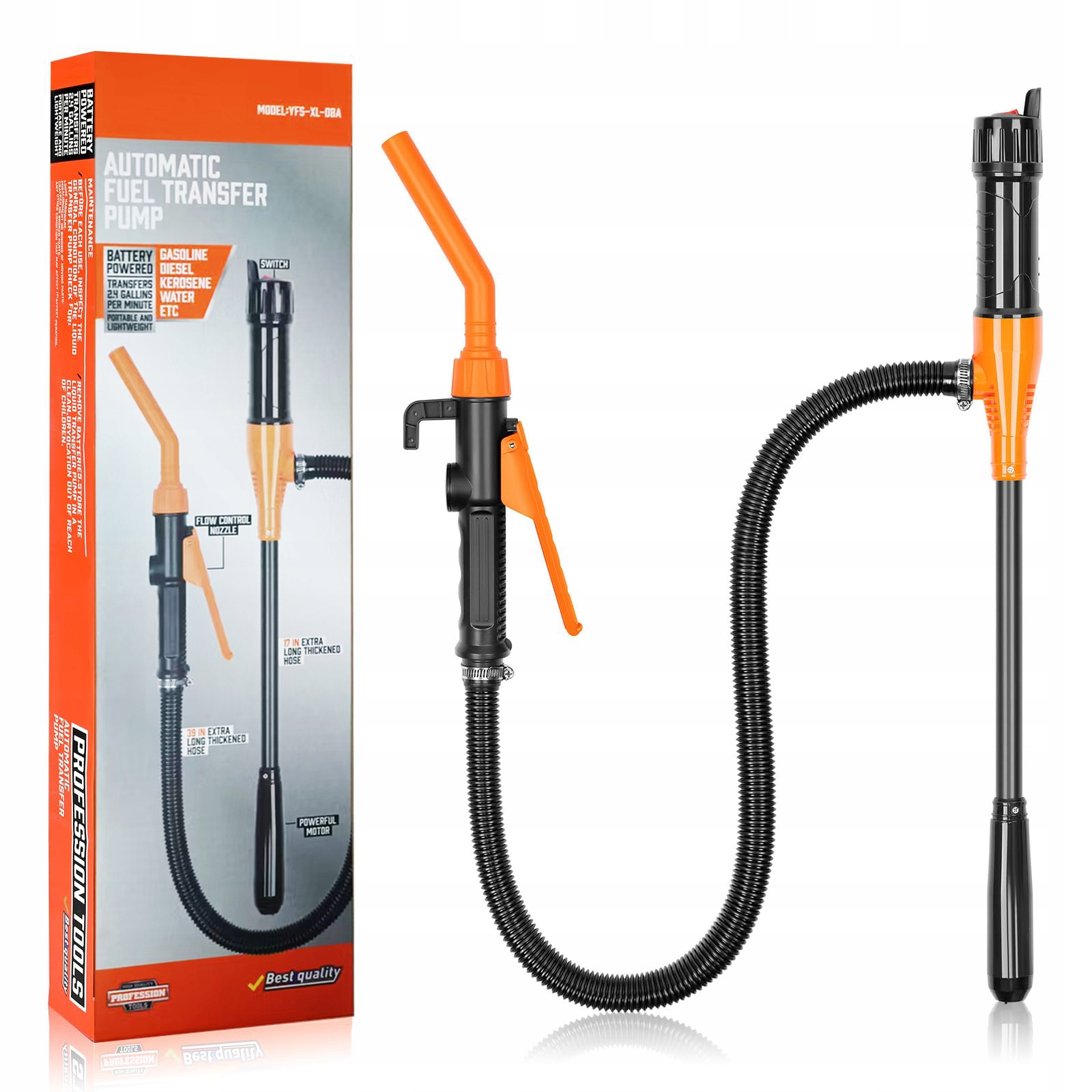 【Простий у використанні】Цей перекачувальний насос із акумуляторним живленням забезпечує безпечне та просте перекачування рідин. Його труба довжиною 40 см вміщує від 11 до 19 літрів рідини, а шланг подовжується до 90 см. Цей ручний насос широко використовується для перекачування бензину, непитної води, гасу та інших неагресивних рідин.