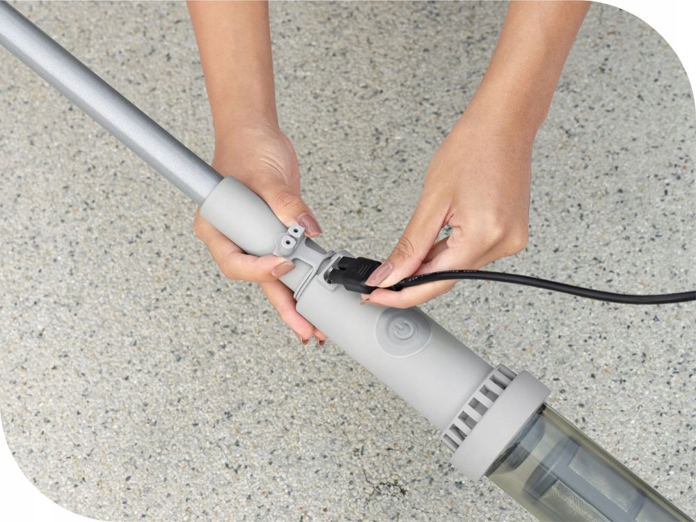 Цей предмет живиться від батареї, тож вам не доведеться турбуватися про те, що кабелі заважатимуть вам під час прибирання бруду та сміття з дно спа. Пилосос може безперервно працювати між заряджаннями до 50 хвилин. Після використання підключіть його до розетки для заряджання. У набір входитьповоротна всмоктуюча головка, яка дозволяє пилососити як плоскі стіни, так і кути. Просте керування робить прибирання легким. Завдяки штанзі, що складається з двох частин, пилосос досягає довжини приблизно 155 см. Прозорий сміттєвий бак дозволяє бачити, коли пилосос потребує очищення. Забруднювачі збираються в легкодоступний фільтр з нержавіючої сталі, який легко спорожнити.