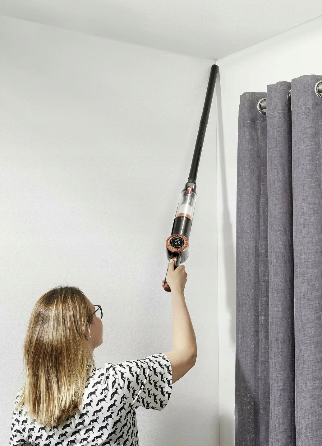 З багатим обладнанням, що забезпечує максимальну гнучкість. Високопродуктивний двигун 85 Вт із 2 рівнями потужності з дуже високою потужністю всмоктування для винятково ефективного збору бруду. З 2-кратною системою фільтрації з фільтром HEPA. Завдяки двом подовжувачам і насадці для підлоги ручний пилосос стає пилососом «в одну мить» . Без насадки для підлоги ідеально підходить для важкодоступних поверхонь, наприклад B. полиць і стелі. Доходить до кожного куточка. Ультралегкий – важить лише 700 г. Надтихий із 75 дБ. Ємність для бруду, що миється, ємністю 300 мл. Цифровий індикатор батареї.
