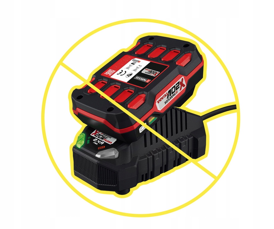- Пристрій сумісний з акумуляторами серії PARKSIDE X 20 V Team