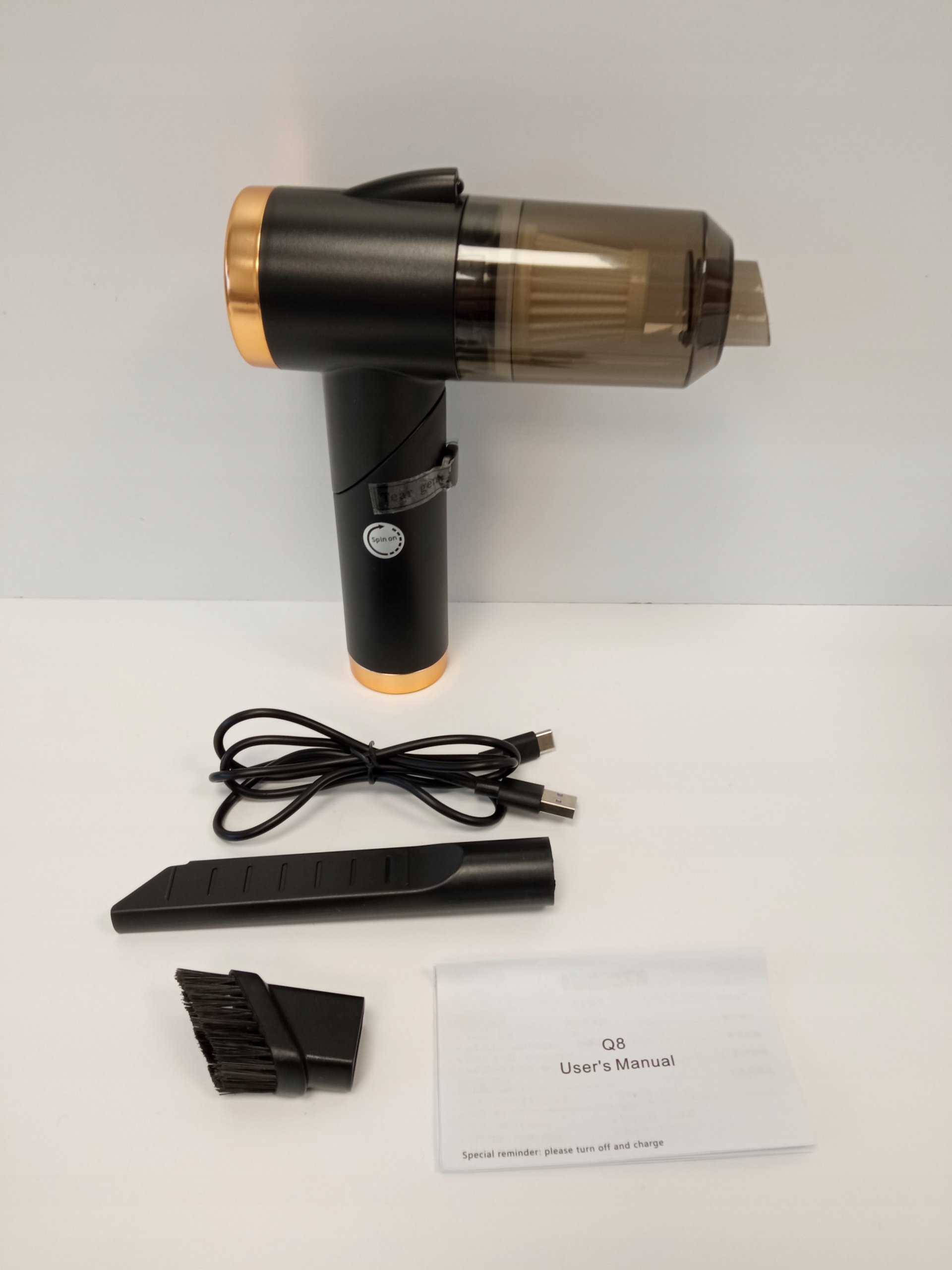 Наведіть порядок у своїй машині та домі за допомогою цього надзвичайно зручного ручного пилососа! Ручка, що складається під кутом 90°, дозволяє поміститися навіть у найменші салони автомобіля, а в складеному вигляді займає мінімум місця. Завдяки потужності всмоктування 9000 Па ви можете легко видалити шерсть тварин, крихти та пил із важкодоступних куточків. Акумулятор 4000 мАг забезпечує до 30 хвилин безперервної роботи на одному заряді, а зарядка через USB робить його надзвичайно універсальним. Він важить всього 340 грамів, тому користуватися ним можна без втоми. Світлодіодне освітлення підсвітить важкодоступні місця!