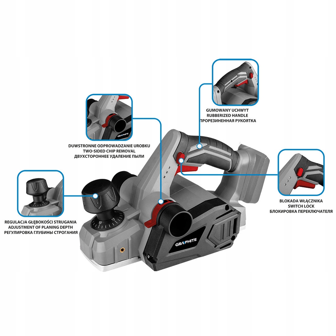 Рубанк GRAPHITE 18V Energy+ без акумулятора та зарядного пристрою 58GE135