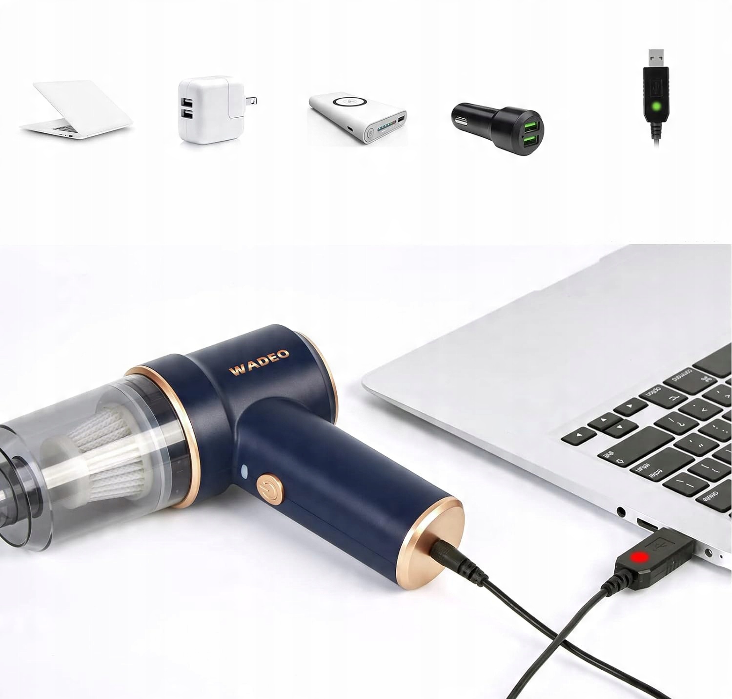 Бездротовий автомобільний пилосос можна заряджати від домашньої розетки або автомобільного зарядного пристрою. Ви завжди можете зарядити цей маленький пилосос лише за допомогою одного порту USB.