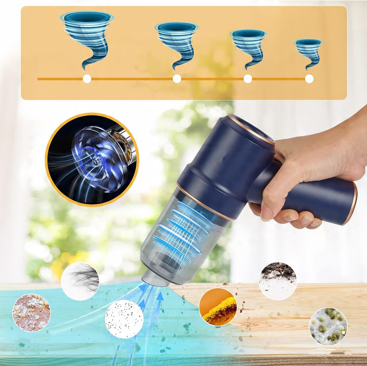 👍👍👍【Потужність всмоктування 8000 PA】 Потужність 120 Вт забезпечує дуже високу потужність всмоктування 8000 Па, що вдвічі більше, ніж у звичайних ручних пилососів. Потужність очищення досягає 99,9%, і він легко справляється з різними маленькими куточками та щілинами. Підходить для чищення направляючих розсувних дверей, вікон, ящиків, комп’ютерних блоків, дверей автомобіля, диванів, клавіатур, швейних машин, піаніно тощо.