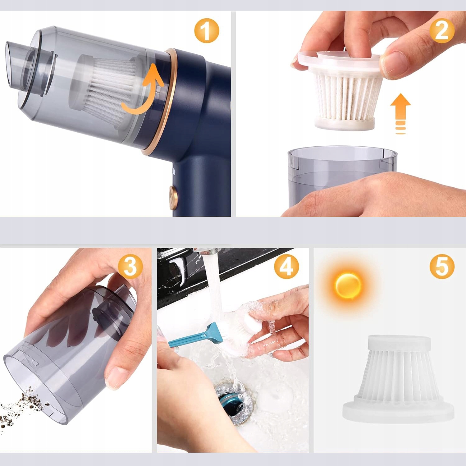 👍👍👍【Знімний фільтр який можна мити】 В автомобільному пилососі використовується фільтр високої щільності, який міцніший і довговічніший, ніж звичайні фільтри. Завдяки багаторазовому фільтру, який можна мити, конструкція, яку легко знімати та встановлювати, полегшує регулярне чищення та допомагає підтримувати тривалу ефективність всмоктування.