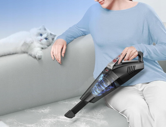 Бездротовий ручний пилосос оснащений високопродуктивним двигуном із потужністю всмоктування 9000 Па. Бездротовий ручний пилосос може легко очистити шерсть домашніх тварин, пил, частинки та пісок, незалежно від того, чи є вони на підлозі, меблях чи килимі.