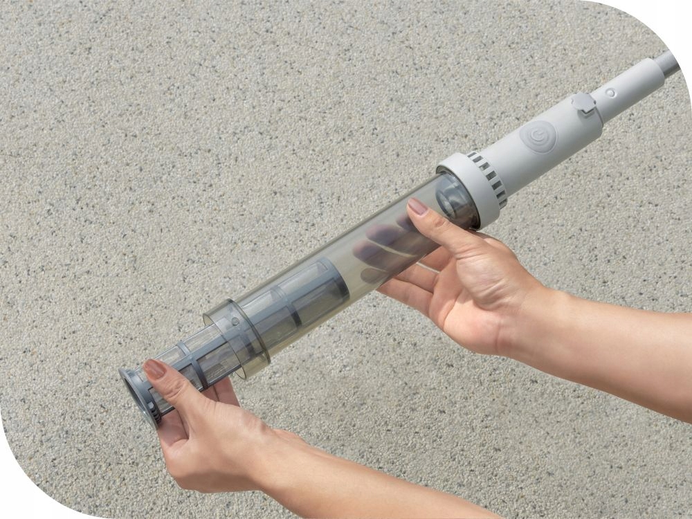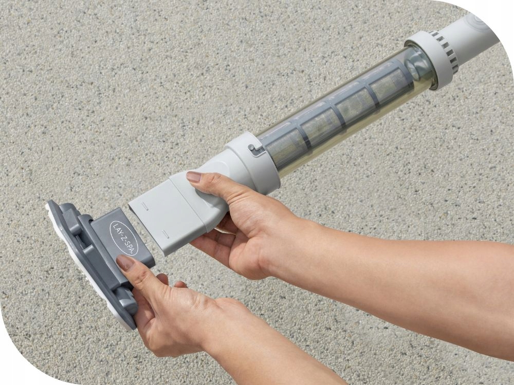 Цей предмет живиться від батареї, тож вам не доведеться турбуватися про те, що кабелі заважатимуть вам під час прибирання бруду та сміття з дно спа. Пилосос може безперервно працювати між заряджаннями до 50 хвилин. Після використання підключіть його до розетки для заряджання. У набір входитьповоротна всмоктуюча головка, яка дозволяє пилососити як плоскі стіни, так і кути. Просте керування робить прибирання легким. Завдяки штанзі, що складається з двох частин, пилосос досягає довжини приблизно 155 см. Прозорий сміттєвий бак дозволяє бачити, коли пилосос потребує очищення. Забруднювачі збираються в легкодоступний фільтр з нержавіючої сталі, який легко спорожнити.
