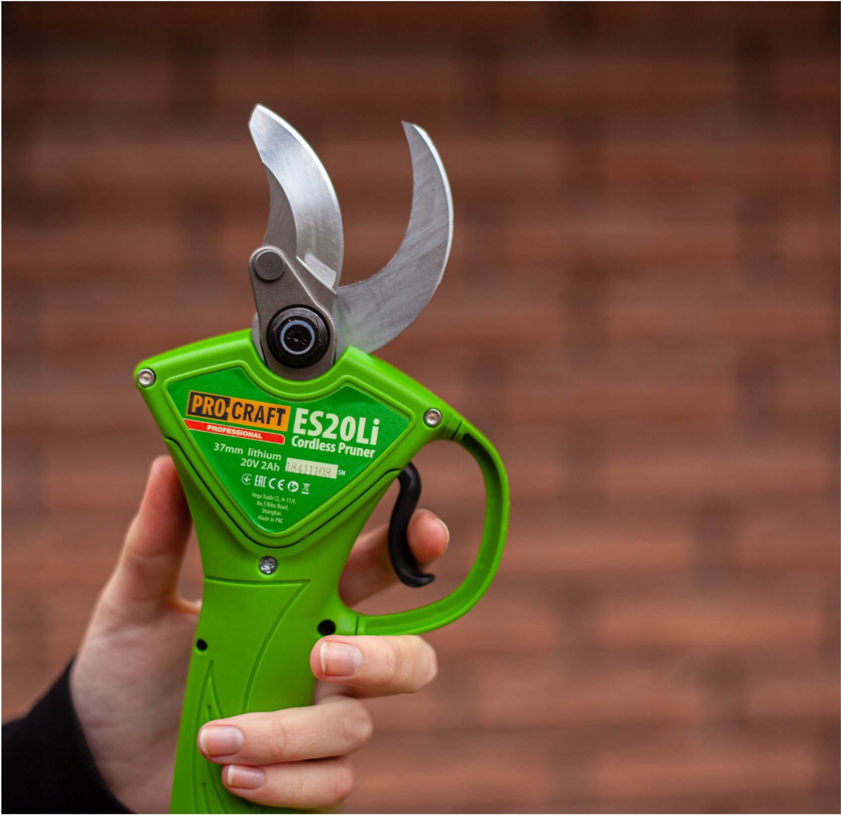 Акумуляторний секатор Procraft ES20Li — надзвичайно простий у використанні професійний пристрій для зрізання гілок діаметром до 37 мм. Мала вага, ергономічний дизайн, відмінний баланс і висока потужність роблять роботу в будь-якому саду, саду, винограднику або розсаднику декоративних рослин набагато простіше і швидше. У порівнянні зі звичайними ручними секаторами, які, на жаль, викликають значну втому рук або навіть мозолі після тривалої роботи, секатор із акумуляторним живленням забезпечить тривалу комфортну роботу без втоми та болю. Ефективність роботи з акумуляторним секатором в 10 разів ефективніше роботи з традиційним ручним секатором, одна батарея дозволить безперебійно працювати до 4 годин. Перевірити рівень заряду акумулятора набагато простіше завдяки зручному світлодіодному індикатору. Пристрій дозволяє працювати в діапазоні температур від -10 до +65 ℃, тому ви можете працювати в будь-яку пору року.