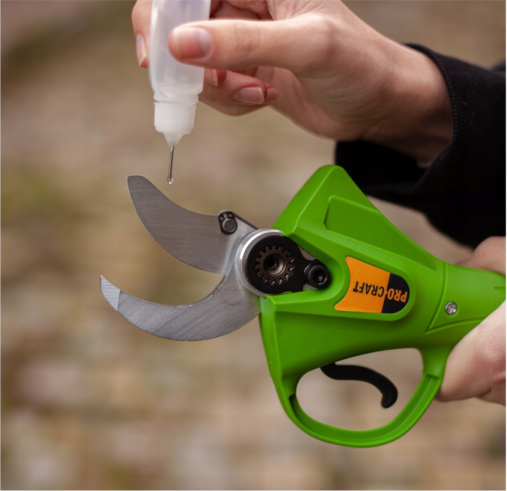 Правильний догляд та експлуатація - запорука довговічності та якісної роботи пристрою. До нашого секатора ми додаємо всі необхідні аксесуари, включаючи спеціальне масло для змащування лез і набір ключів для їх можливої заміни.