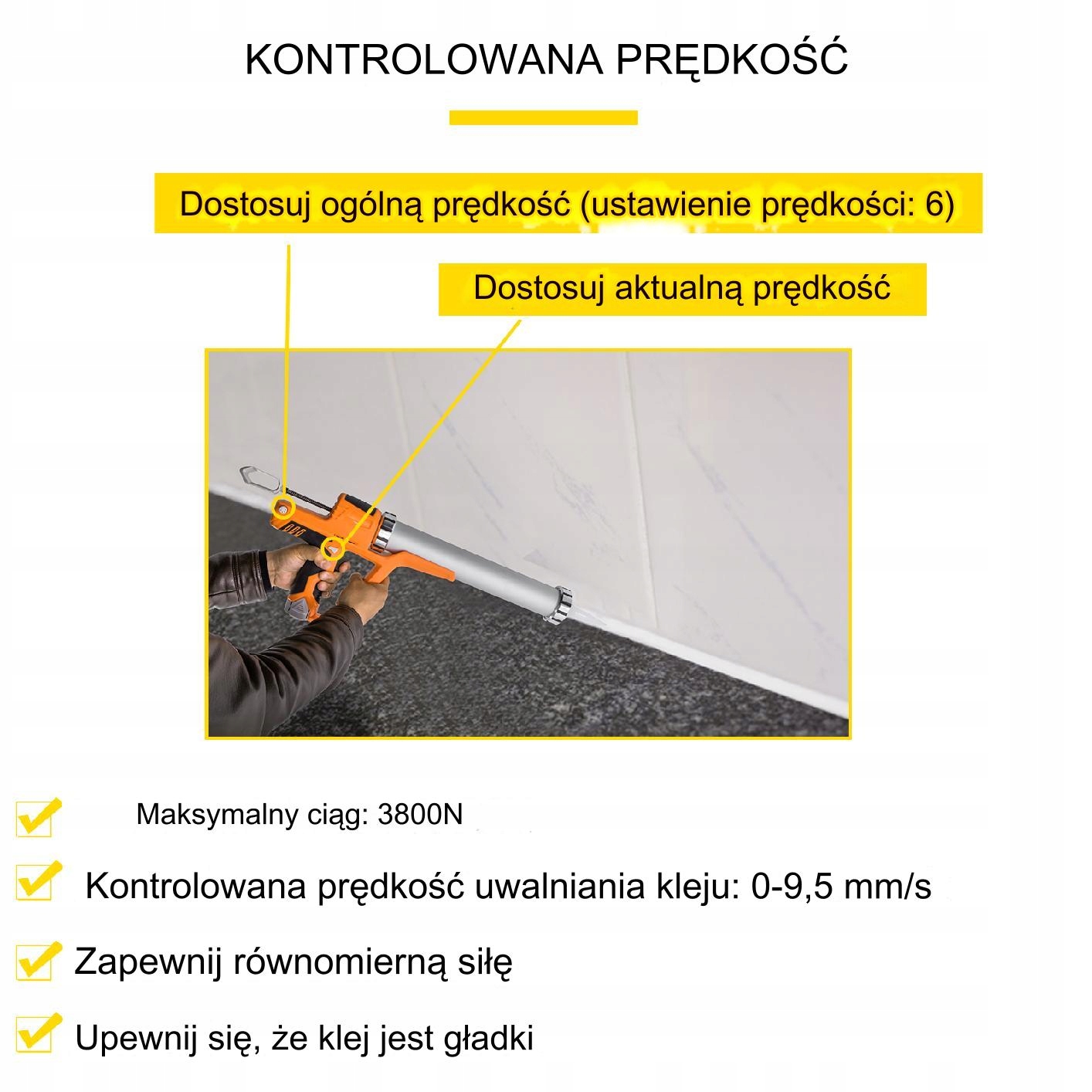 Гармата пропонує контрольовану швидкість, що дозволяє регулювати тягу, регулюючи параметри швидкості. Ви можете зручно контролювати поточну швидкість під час роботи, забезпечуючи плавне нанесення клею. Швидкість тяги ковбасного пістолета становить від 0 до приблизно 0,0066 метра в секунду, а максимальний тиск досягає 3800 Н.