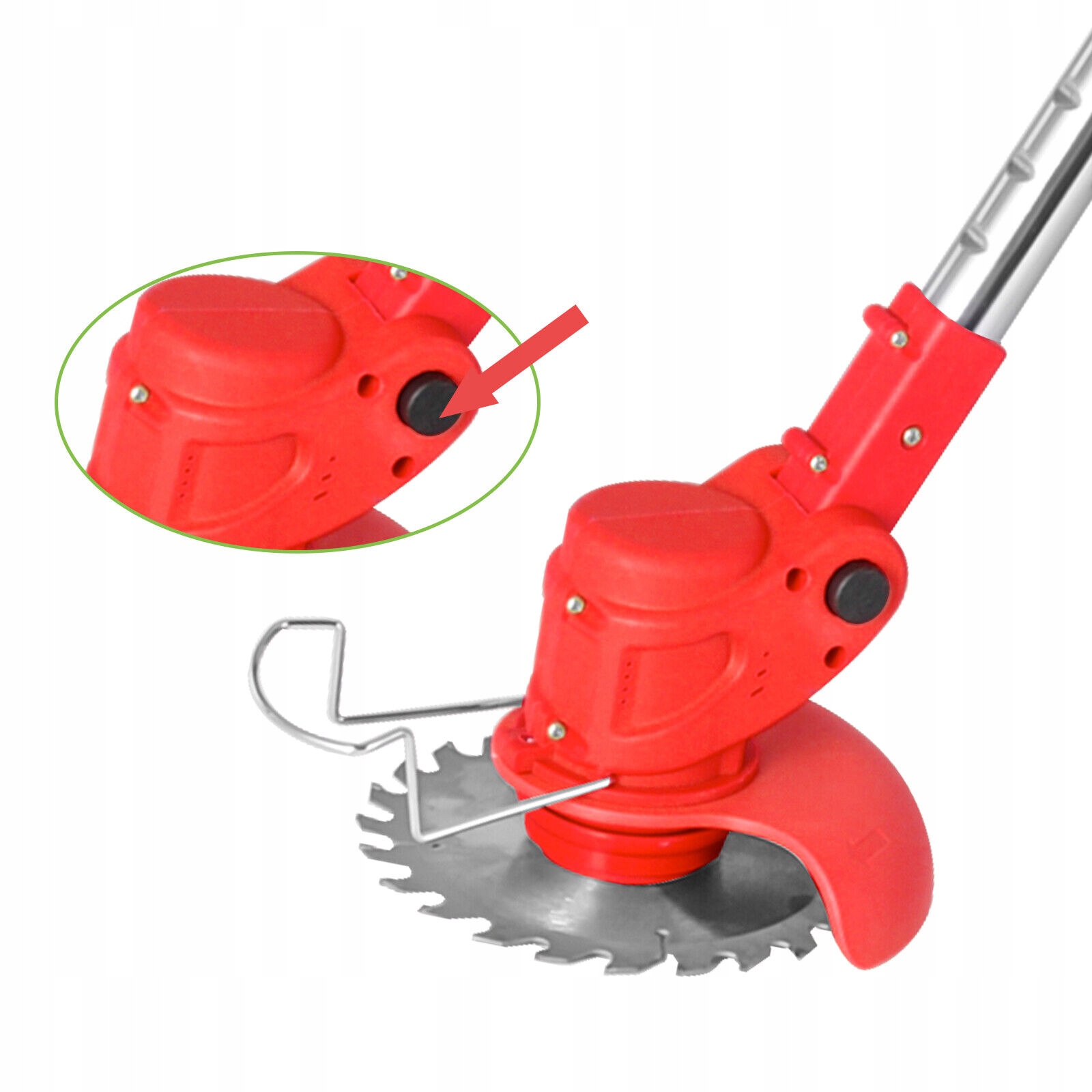 - Захисне покриття ефективно запобігає розбризкуванню бур'янів. Дротяний каркас із захистом від зіткнень захищає лезо від контакту з твердими предметами.